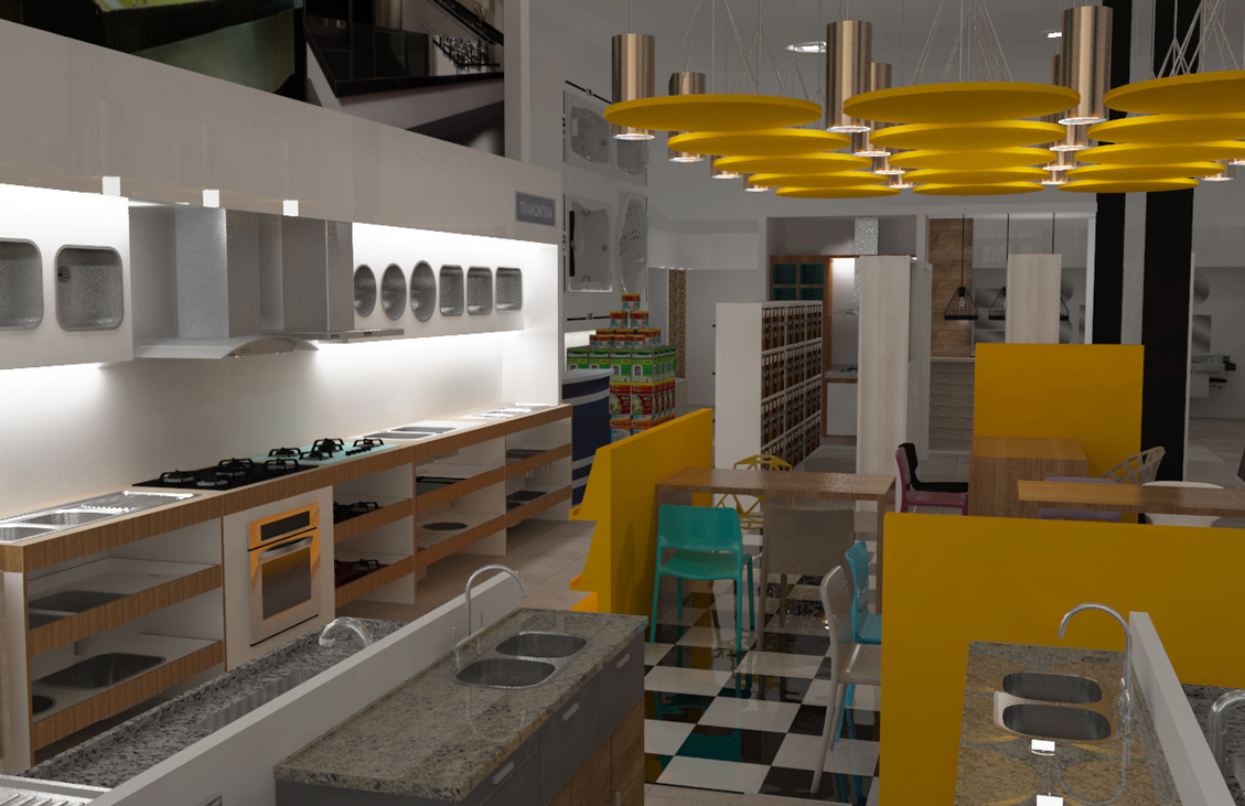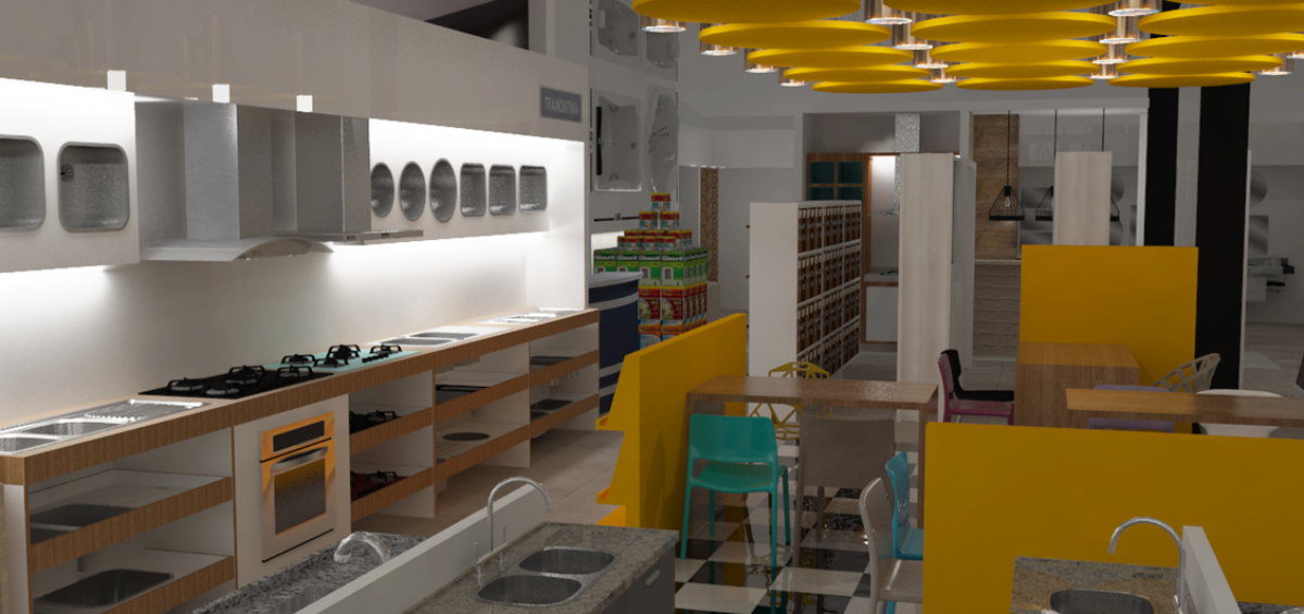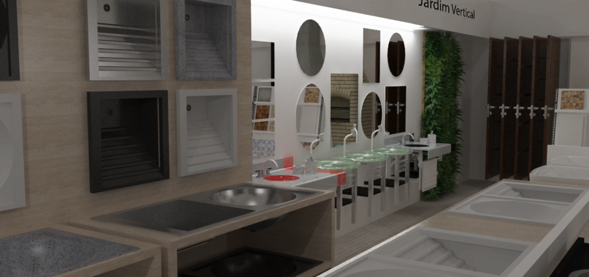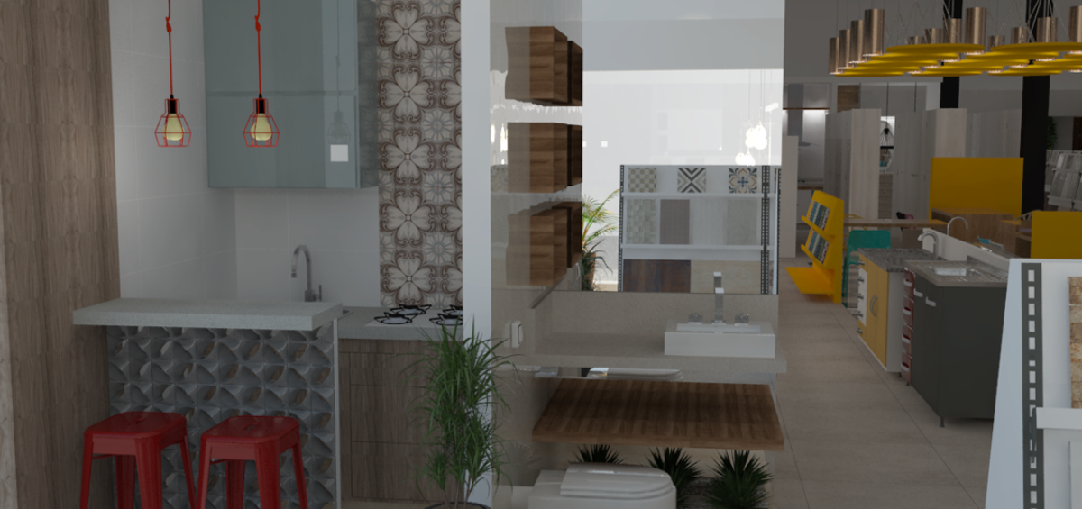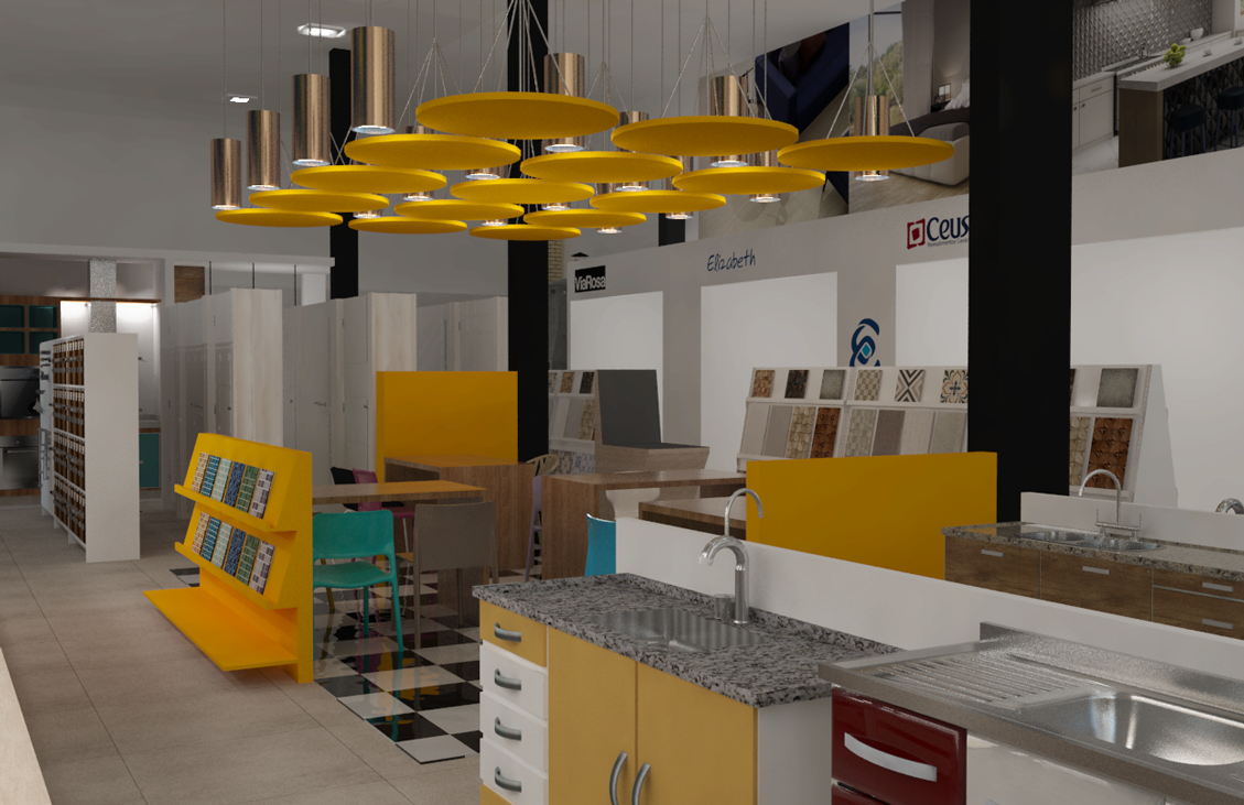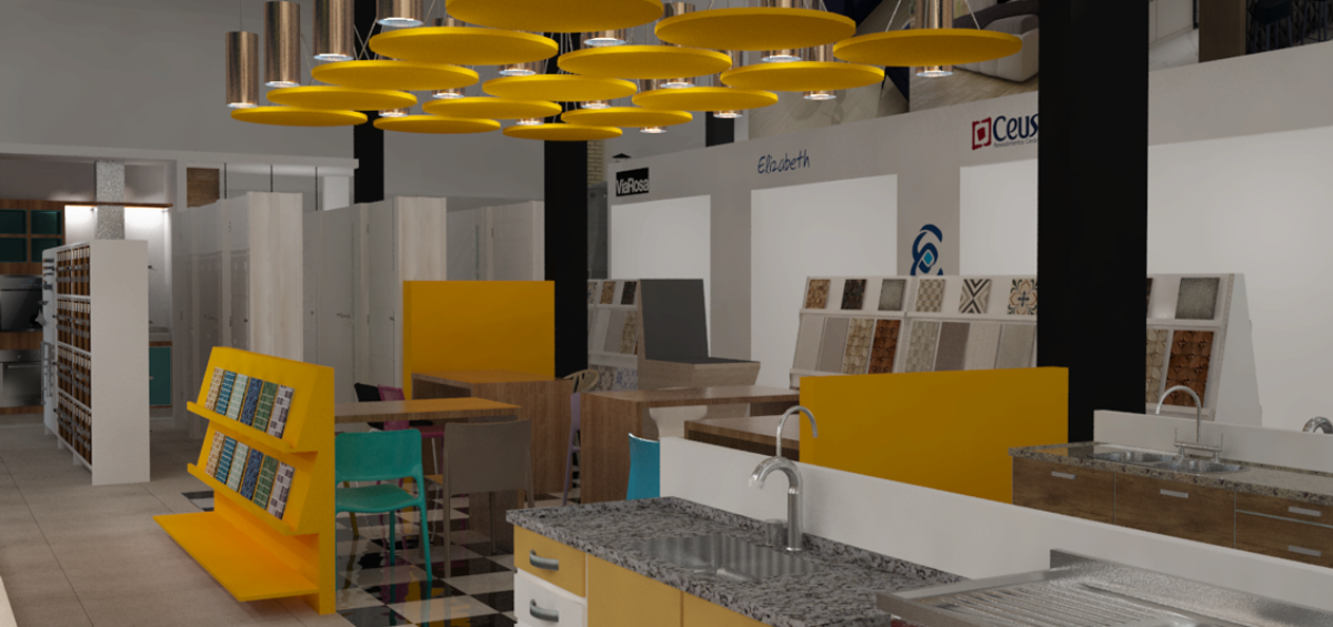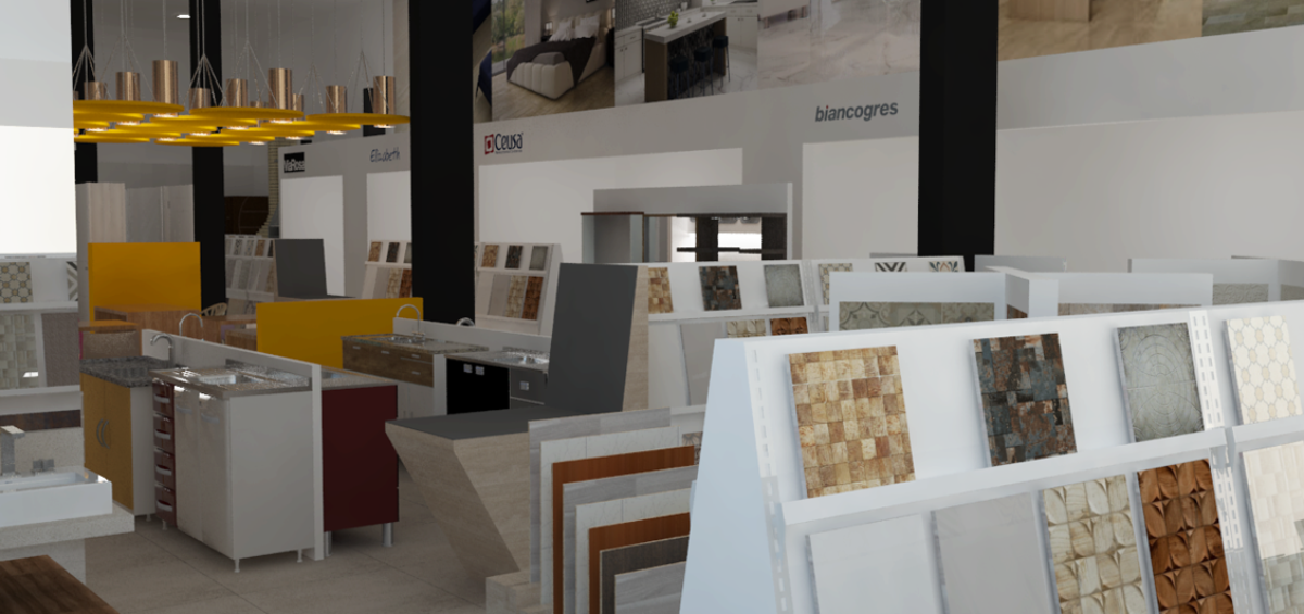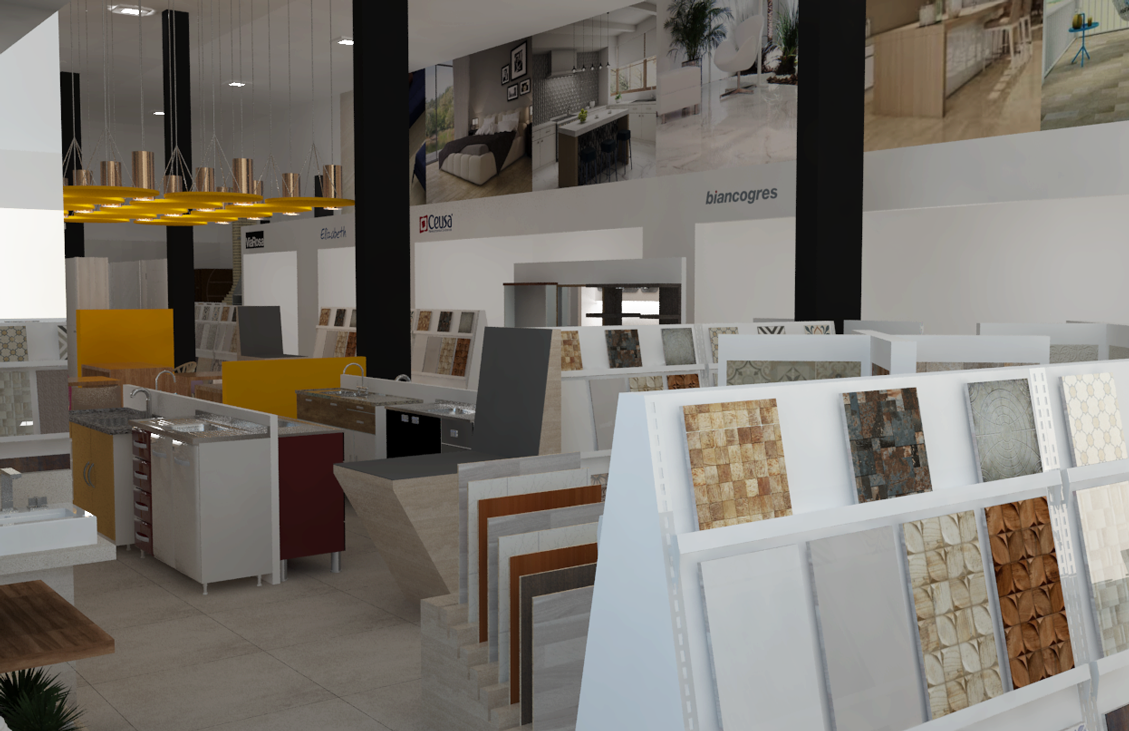 Projeto de arquitetura comercial realizado em Ipatinga para Gomes Construção e Utilidades em 2016.