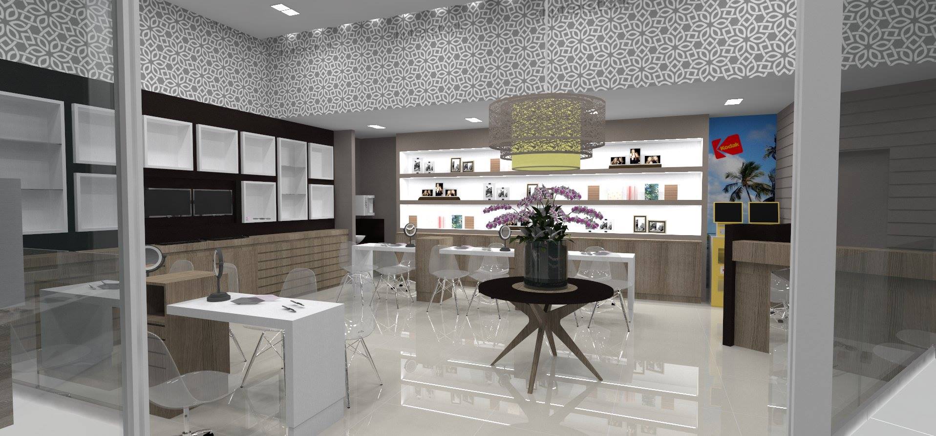 Projeto de arquitetura comercial realizado para Óticas Maria José.