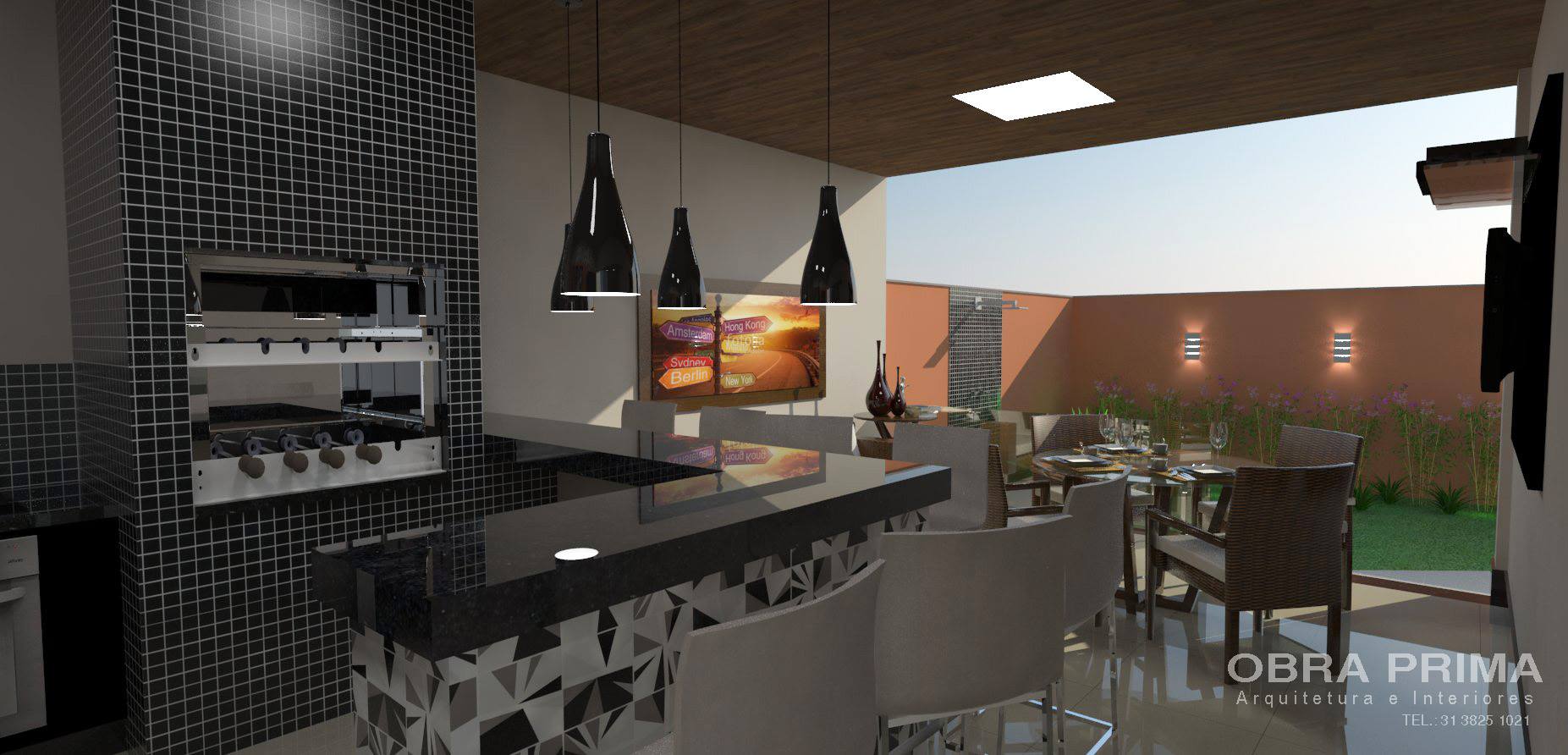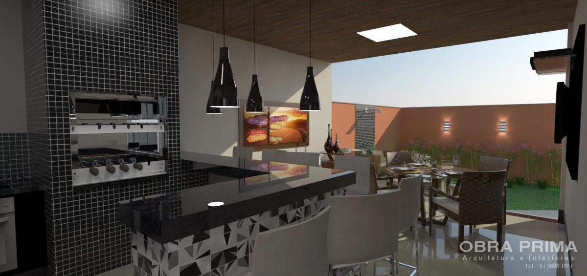 Projeto de arquitetura residencial e de decoração e interiores para Varanda Gourmet realizado Ipatinga.