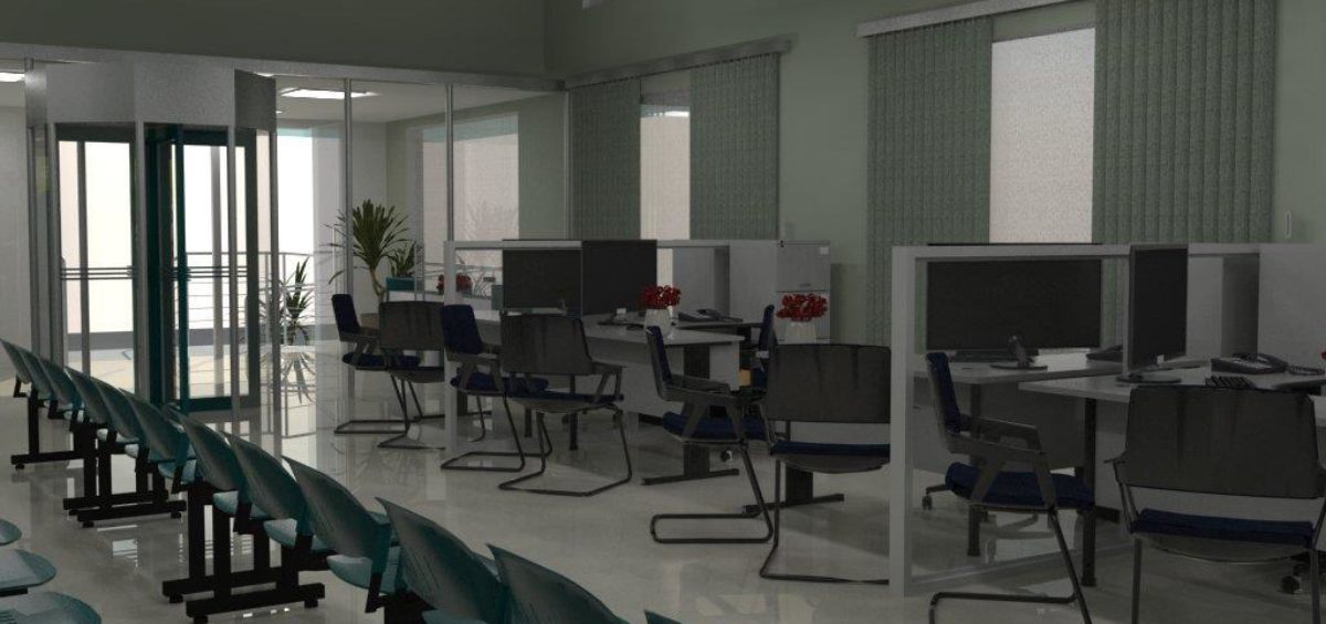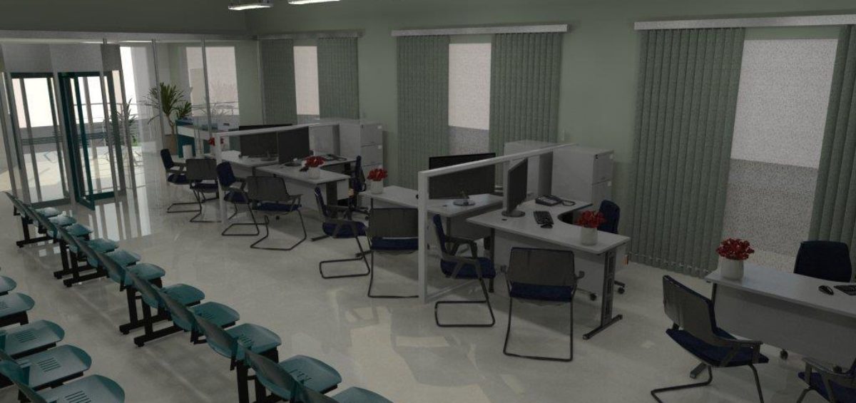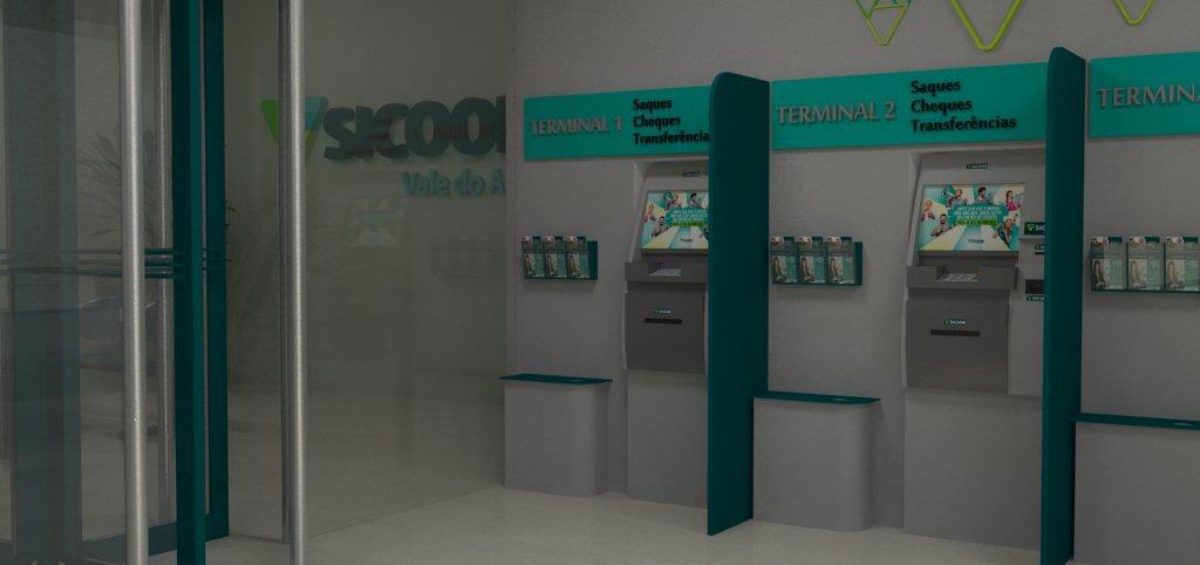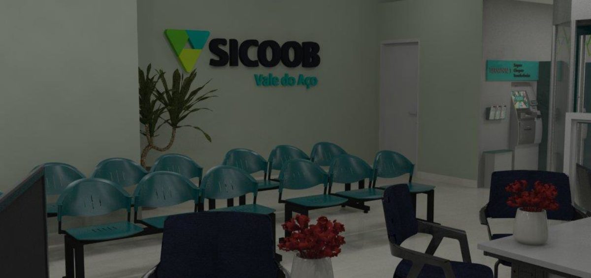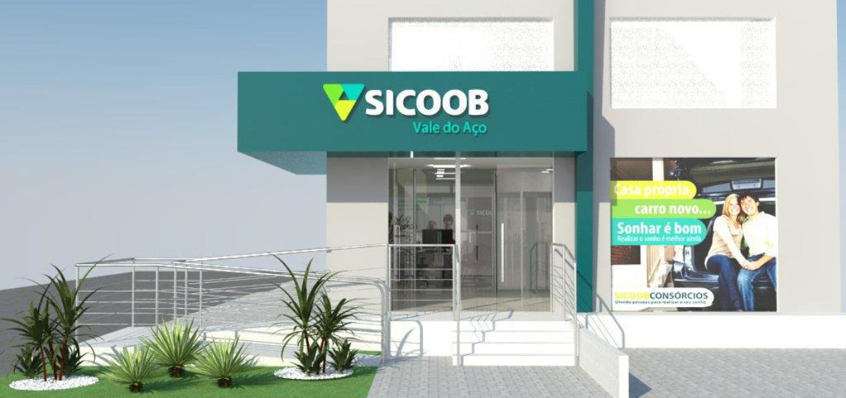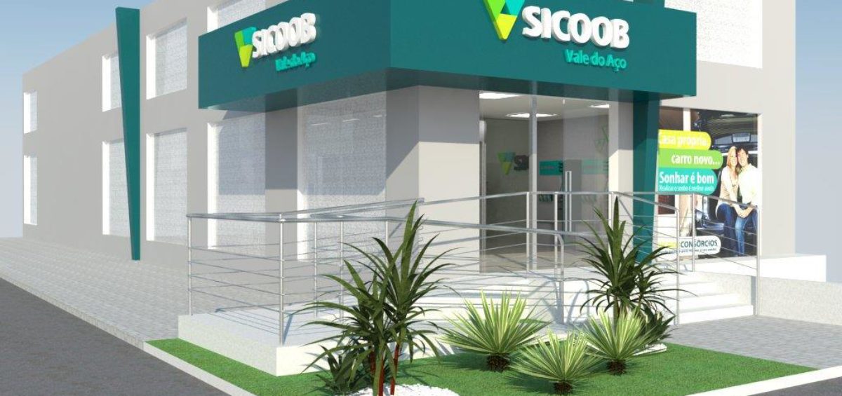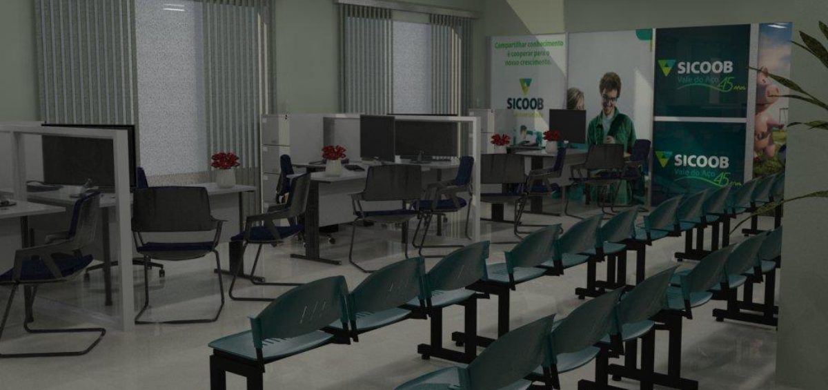 Projeto de arquitetura institucional realizado em Vespasiano para a Sicoob em 2016.