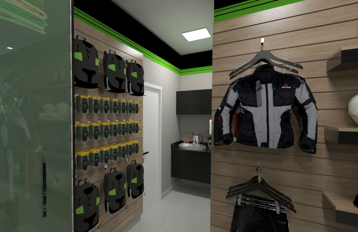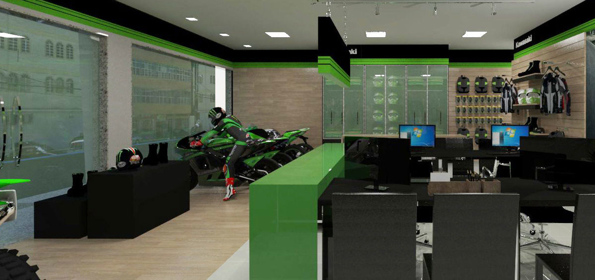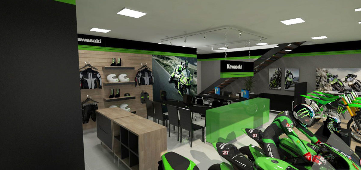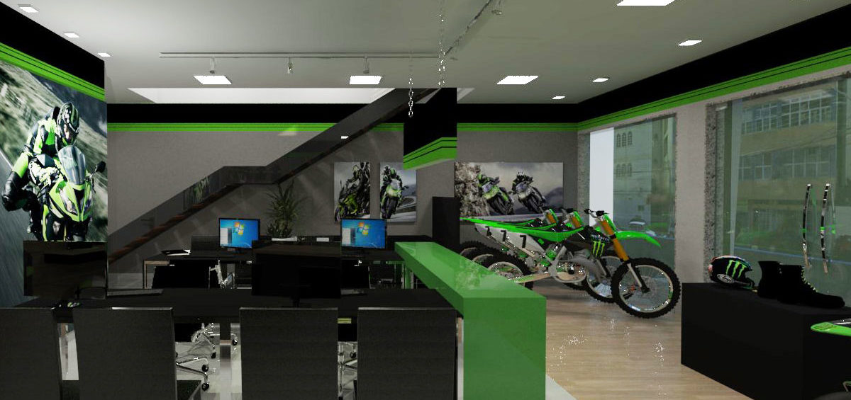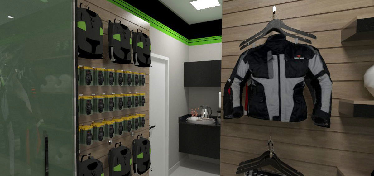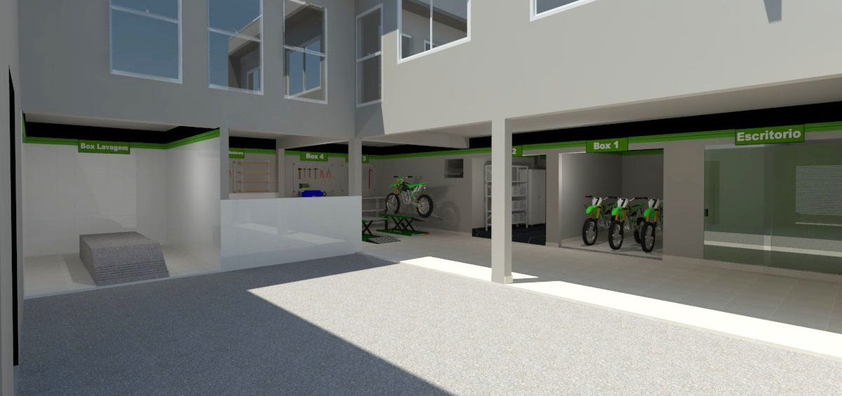 Projeto de arquitetura comercial realizado em Iapu para Zanga Motos em outubro de 2016.