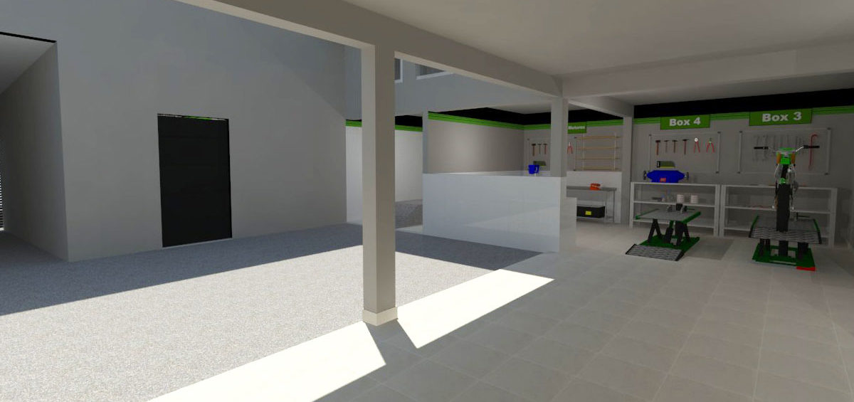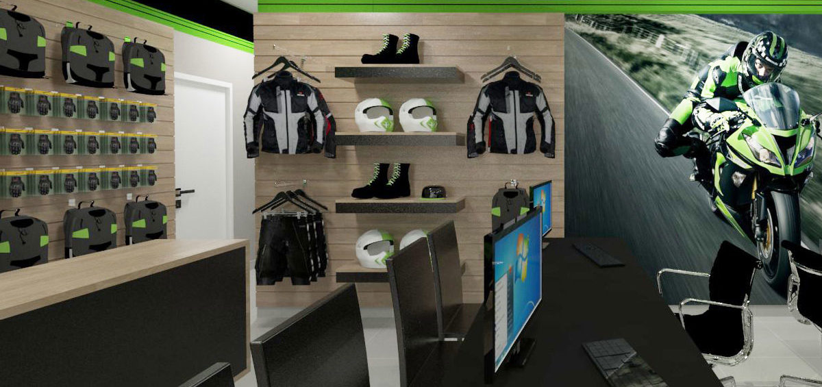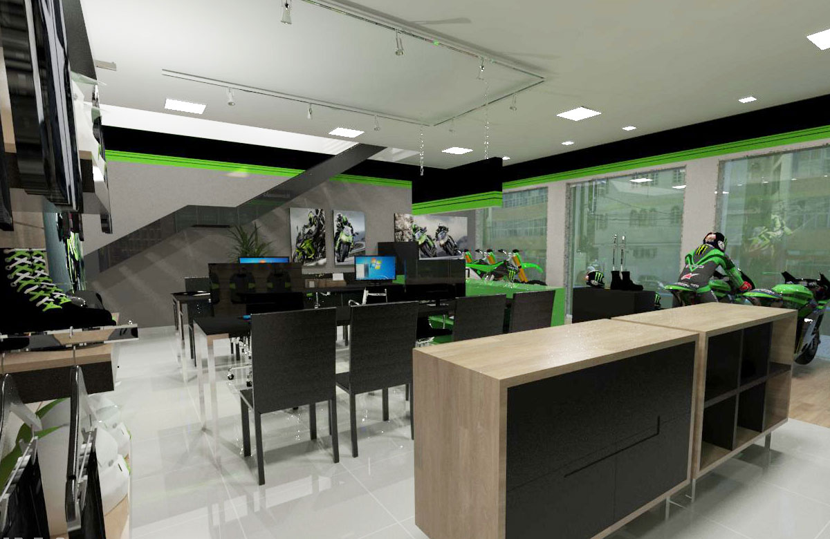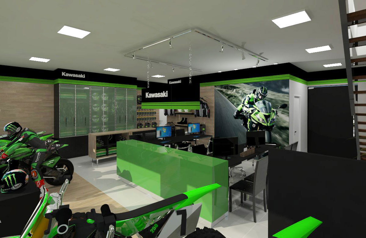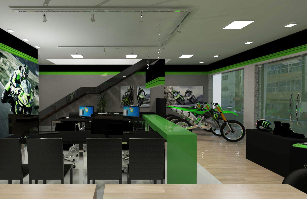Projeto de arquitetura comercial realizado em Iapu para Zanga Motos em outubro de 2016.